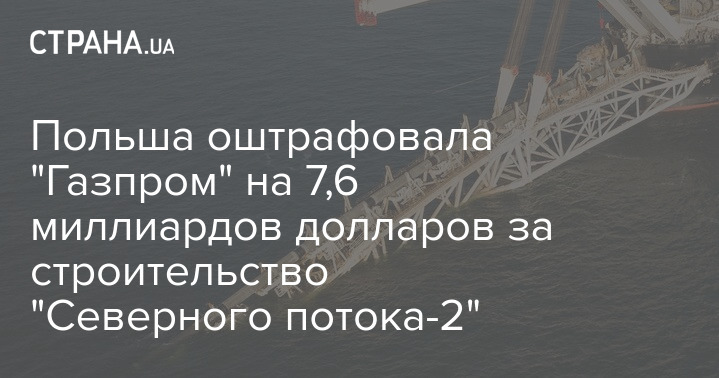 Польша оштрафовала "Газпром" на 7,6 миллиардов долларов за строительство "Северного потока-2"