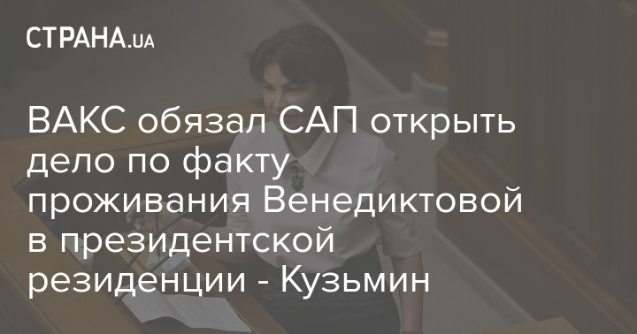 ВАКС обязал САП открыть дело по факту проживания Венедиктовой в президентской резиденции - Кузьмин