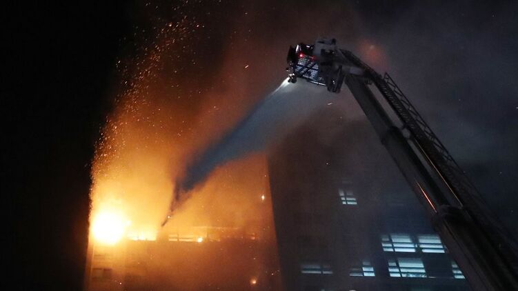 Уточняется, что горящее здание имеет 2 этажа под землей и 33 этажа над землей, его общая площадь 311 210 м2.