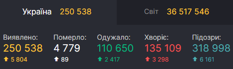 Добавим, что вчера, 8 октября, в Украине общее число зараженных достигло показателя в 244 734 человека.