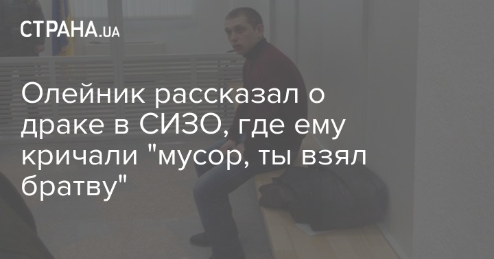 "Перед тем, как доставить меня в суд, по непонятным причинам меня поместили общую камеру, где отбывают наказание... где заключены другие задержанные. Со словами: "Мусор, ты вязал братву" на меня набросился человек с наколками и осуществил несколько ударов в область головы. Я, отступая, чтобы избежать столкновения, споткнулся, упал, это не остановило нападавшего и он совершил несколько ударов. Работники СИЗО, услышав потасовку, открыли дверь и прекратили драку", - заявил Олейник в эфире телеканала 112.