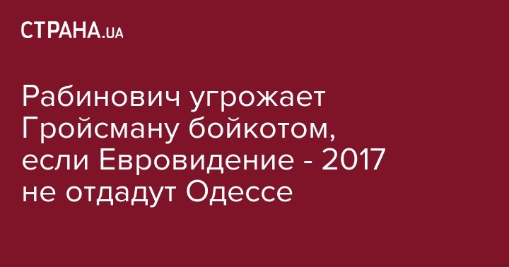 Рабинович угрожает Гройсману бойкотом, если Евровидение - 2017 не отдадут Одессе