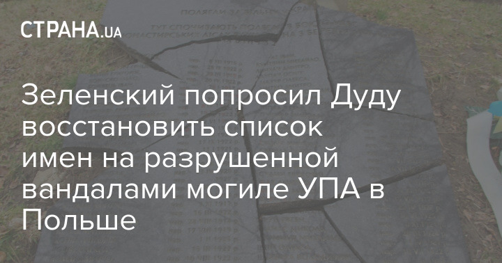 Зеленский попросил Дуду восстановить список имен на разрушенной вандалами могиле УПА в Польше