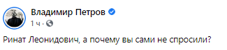 "Ринат Леонидович, а почему вы сами не спросили?", - иронизирует политтехнолог Владимир Петров, намекая, что выгоды от СЭЗ получит прежде всего бизнес Ахметова на Донбассе.