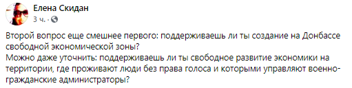 Сегодня Зеленский озвучил второй вопрос: поддерживаешь ли ты создание свободной экономической зоны на Донбассе?