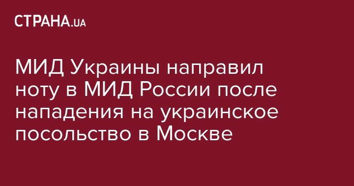 После нападения неизвестных на посольство Украины в Российской Федерации, которое произошло в субботу 27 августа, МИД Украины направило ноту протеста в адрес МИД Российской Федерации, передает Интерфакс.