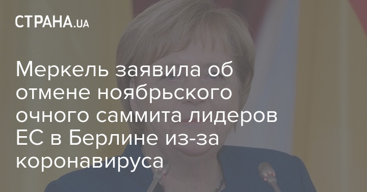 Канцлер Германии Ангела Меркель заявила, что Евросоюз принял решение отменить очный саммит в Берлине, запланированный на ноябрь, из-за пандемии коронавируса.