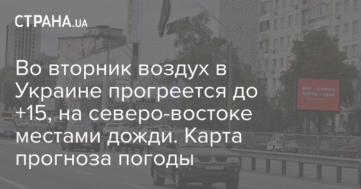 Во вторник воздух в Украине прогреется до +15, на северо-востоке местами дожди. Карта прогноза погоды