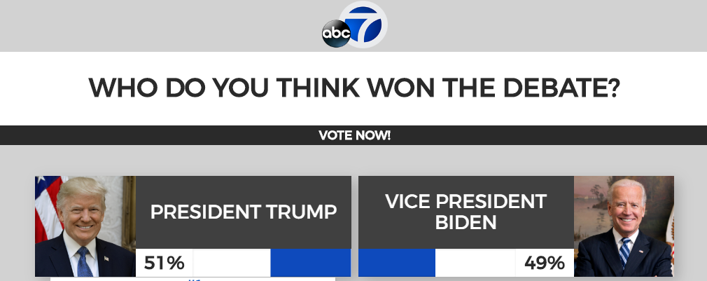 Во время первых дебатов 29 сентября Трамп и Байден осветили шесть тем - пандемию коронавируса, состояние экономики, расовые проблемы и протесты, назначение судей в Верховный суд, честность выборов и свое прошлое. Для аргументов по каждому пункту у них было 15 минут, во время которых оба кандидата постоянно перебивали и оскорбляли друг друга.