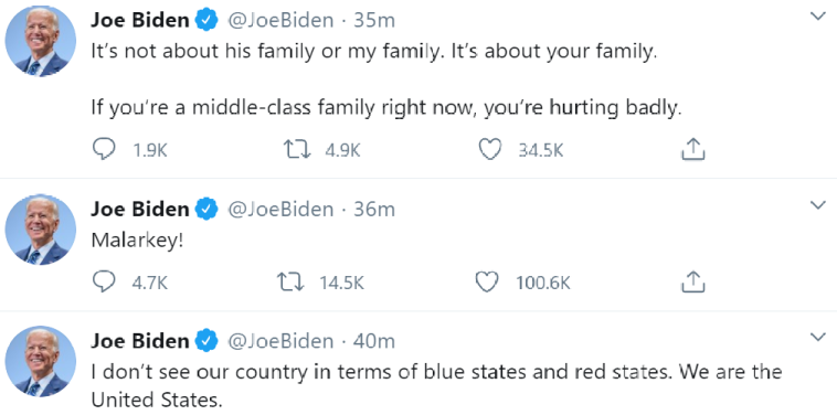 Кстати, пока Байден выступал на дебатах, его заявления публиковали в его Твиттере, но в руках Байдена на сцене телефона нет. То есть официальный Твиттер политика ведётся не им.