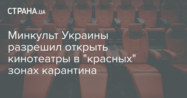 "Как и во многих странах Европы - теперь и в Украине кинотеатрам разрешено работать в "красной" зоне карантина. Посетители здесь могут чувствовать себя безопасно - маски, кондиционирование, рассадка через кресло - 50% зала", - сказано в сообщении на сайте ведомства.
