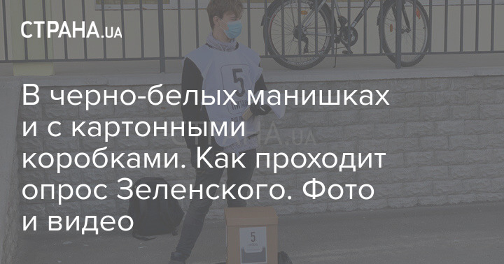 Опрос президента Украины Владимира Зеленского на входе в избирательные участки проводят волонтеры в черно-белых манишках с надписью "5 питань від президента" ("5 вопросов от президента", - с укр.). "Страна" следит за ходом избирательного процесса в обновляемом материале.