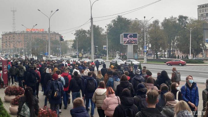 Потом студенты вышли на улицу и с утра, вместо занятий, начали колоннами ходить по городу. Некоторых задерживали в центре Минска.