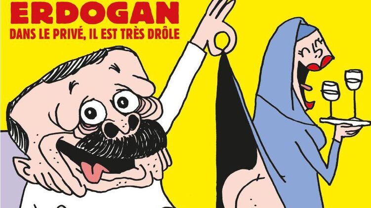 Напомним, 27 октября в продаже появился новый номер журнала Charlie Hebdo. На карикатуре, размещенной на обложке, изображен турецкий лидер Реджеп Тайип Эрдоган в полуодетом виде. Он сидит в кресле с банкой напитка. При этом одной рукой он держит приподнятый подол паранджи женщины и восклицает: "О, пророк!". В подписи к карикатуре сказано, что президент страны "очень игрив в частной жизни".