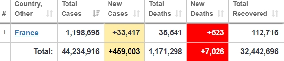 Отметим, что, по состоянию на среду, 28 октября, за сутки во Франции коронавирусом заразилось 33 417 человек. С начала эпидемии Covid-19 там во Франции было зарегистрировано 1 млн 198 тыс. 695 случаев заболевания.