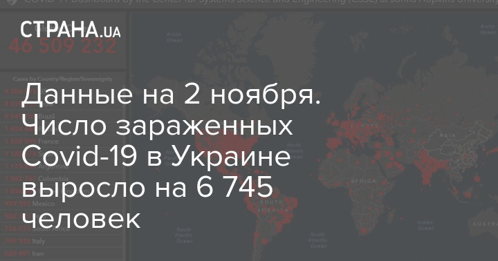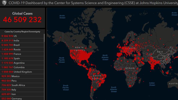 По данным на утро 2 ноября число зараженных на планете составило 46,5 миллионов человек, фото: arcgis.com
