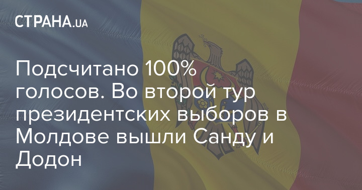 Подсчитано 100% голосов. Во второй тур президентских выборов в Молдове вышли Санду и Додон