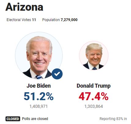 22:36  AP сообщает о победе Байдена в Аризоне. Пока другие источники не подтверждают.