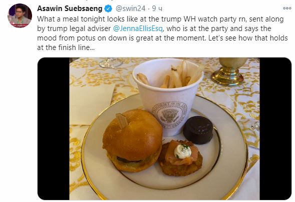19:10  Сегодня президент США будет наблюдать за выборами прямо из Белого дома, оцепленного заборами и полицией. Пригласят 250 человек и параллельно устроят вечеринку.