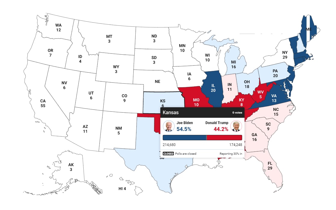 Правда, есть один нюанс. В США у избирателей есть возможность голосовать по почте, и если в этом году из-за коронавируса таких людей наберется много, то подсчет может затянуться от нескольких дней до нескольких недель.