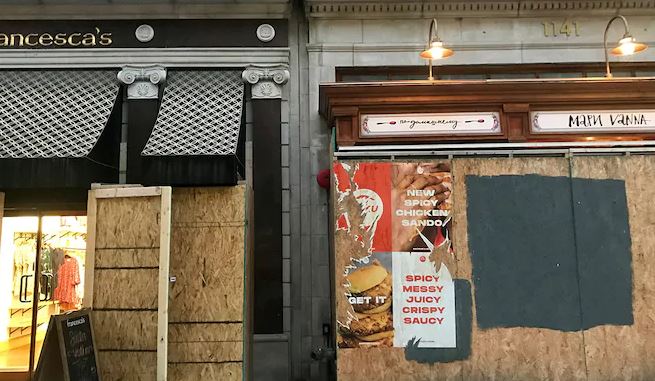 В США забивают окна офисов фанерой в ожидании беспорядков, фото: foxbusiness.com