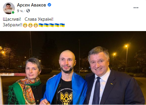 Об освобождении Маркива Аваков также написал в соцсетях: "Счастливые! Слава Украине! Забрали".