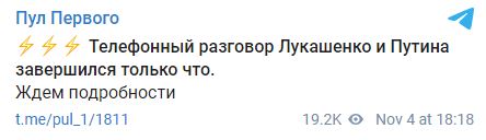 "Телефонный разговор Лукашенко и Путина завершился только что", — говорится в сообщении.
