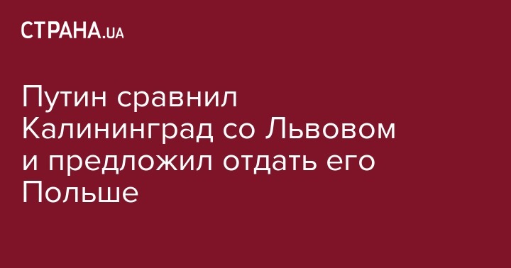 Путин сравнил Калининград со Львовом и предложил отдать его Польше