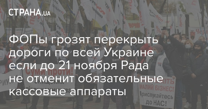"Если Верховная Рада Украины до 21 ноября не примет законопроекты №№3853-1(2), 3993 за основу и в целом и центральная исполнительная власть не примет решение относительно запрета выборочного закрытия любого бизнеса в Украине на время карантина, активисты движения #SaveФОП планируют провести долгосрочное перекрытия международных трасс по всей территории Украины", - говорится в заявлении.