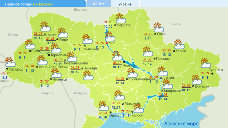 Напомним, по прогнозам синоптиков, с 31 августа по 5 сентября в Киеве установится преимущественно солнечная погода с температурой до +26 днем.