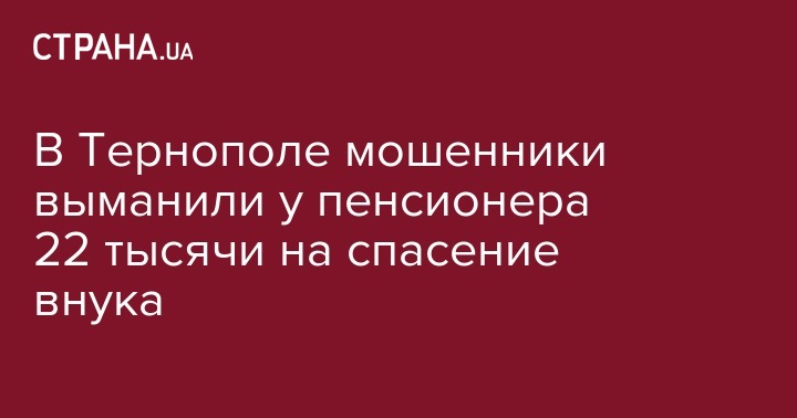 90-летний житель Тернополя отдал в руки мошенника 22 тысячи гривен, чтобы откупить внука, который якобы совершил ДТП. Об этом сообщает ГУ Нацполиции Тернопольской области.