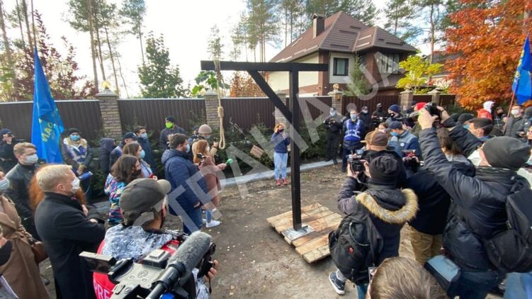 Появились фото и видео митинга националистов с виселицей у дома главы Конституционного суда