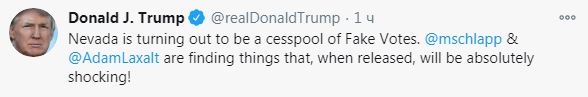 "Невада превратилась в выгребную яму фальшивых голосов", — написал глава государства на своей странице в Twitter.