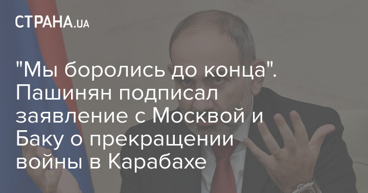 Я подписал заявление с президентами России и Азербайджана о прекращении карабахской войны в 01:00.  Текст уже опубликованного заявления невыразимо болезнен для меня лично и для нашего народа.