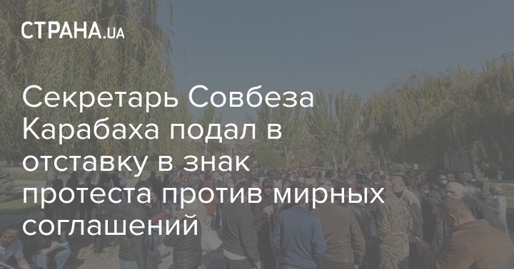 Во вторник, 10 ноября, в знак протеста против подписанного соглашения о перемирии между Баку, Ереваном и Москвой, секретарь Совбеза непризнанной республики Нагорного Карабаха Самвел Бабаян заявил, что уходит в отставку.