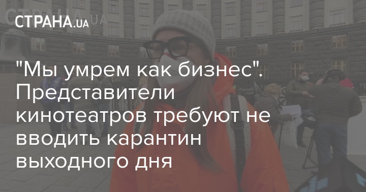 К акции протеста против карантина выходного дня, которую устроили рестораторы у Кабмина, присоединились также сотрудники кинотеатров. Они утверждают, что введение ограничений на работу в субботу и воскресенье будет означать для них потерю всей выручки.