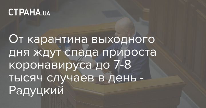Народный депутат, глава парламентского комитета здоровья нации, медпомощи и медстрахования Михаил Радуцкий объяснил цель введения карантина выходного дня. По его словам, если Украине в результате этого режима количество заболевших в сутки снизится до 7-8 тысяч, значит, цель будет достигнута.