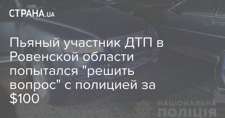 Пьяный участник ДТП в Ровенской области пытался подбросить $100 взятки в полицейскую машину. Скриншот: Полиция