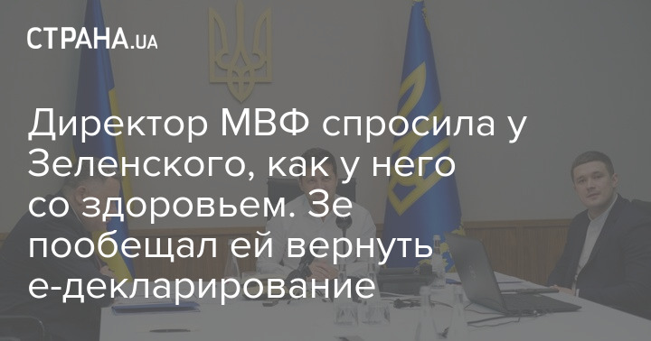 Директор МВФ спросила у Зеленского, как у него со здоровьем. Зе пообещал ей вернуть е-декларирование