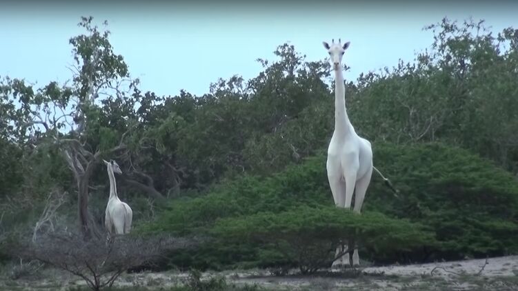 В мире остался один белый жираф, его сородичей убили браконьеры. Фото: скриншот с видео