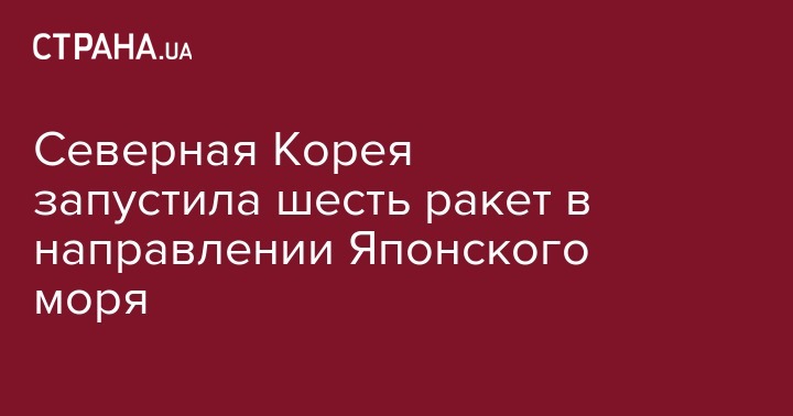 Северная Корея произвела шесть выстрелов ракет ближнего радиуса действия в направлении Японского моря около своего восточного побережья, сообщает Associated Press со ссылкой на министерство обороны Южной Кореи.