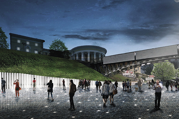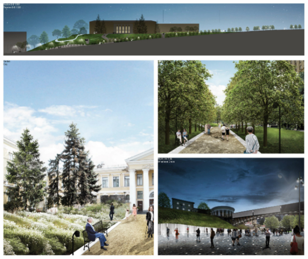 Проект должен был начинаться с Майдана. К нему можно попасть по мощениям Майдана, то есть планировалось единое плавно перетекающее пространство. В одном из склонов должна была располагаться ниша, в которой размещены 107 пилястр, каждая из которых посвящена одному из героев Небесной сотни.