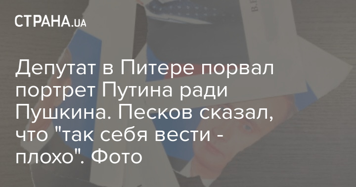 Депутат в Питере порвал портрет Путина ради Пушкина. Песков сказал, что "так себя вести - плохо". Фото
