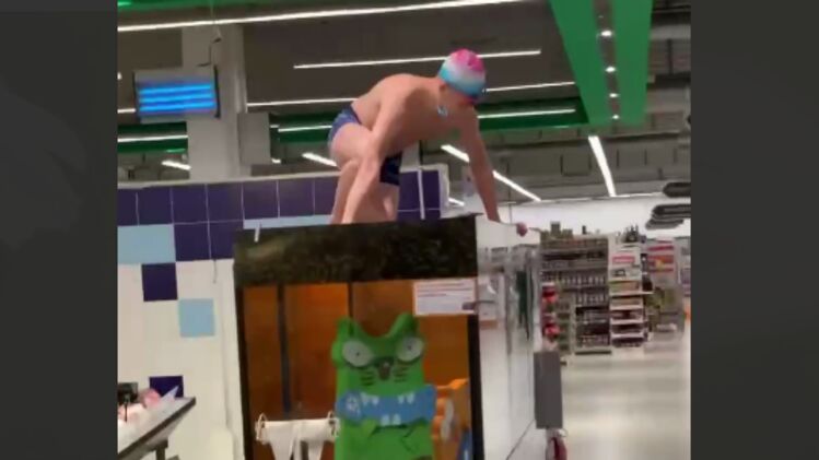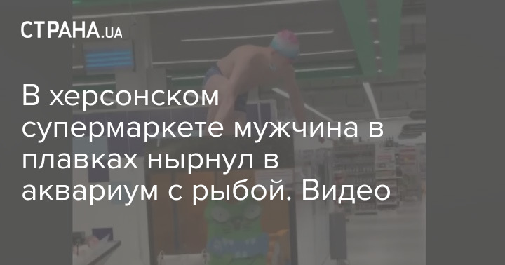 На видео попало, как парень в плавках и купальной шапочке пробежался по супермаркету, а затем погрузился в аквариум с рыбой. Инцидент произошел в Херсоне.