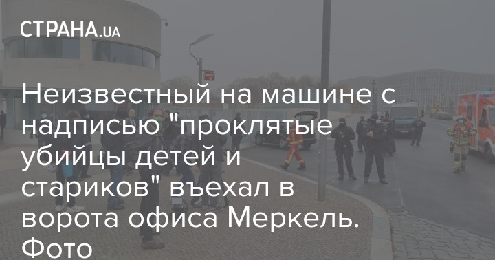 Неизвестный на машине с надписью "проклятые убийцы детей и стариков" въехал в ворота офиса Меркель. Фото