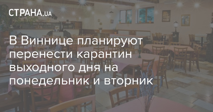 Власти Винницы предложили перенести "карантин выходного дня", который действует в Украине с субботы по воскресенье, на понедельник и вторник. Окончательное решение должна принять комиссия ТЭБ и ЧС.
