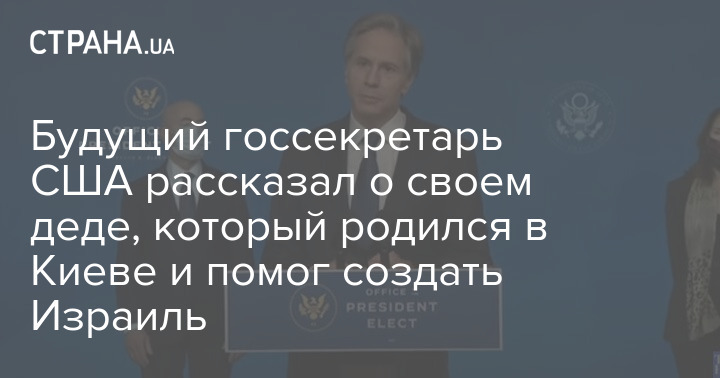 Дед американского политика Энтони Блинкена, которого новоизбранный глава Белого дома Джо Байден планирует выдвинуть кандидатом на должность госсекретаря США, родился в Киеве и бежал из Украины, опасаясь погромов. Об этом рассказал сам 58-летний Блинкен во время выступления членов команды Байдена в Уилмингтоне в штате Дэлавер, передает The Hill.
