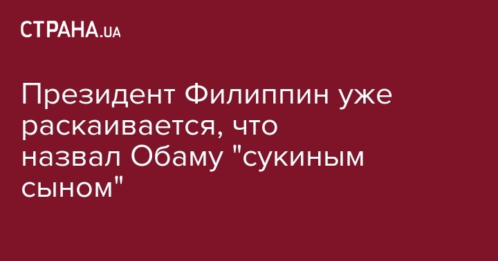 Президент Филиппин Родриго Дутерте выразил сожаление в связи с тем, что публично назвал президента США Барака Обаму "сукиным сыном". Об этом сообщают РИА Новости.