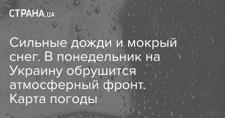 Сильные дожди и мокрый снег. В понедельник на Украину обрушится атмосферный фронт. Карта погоды