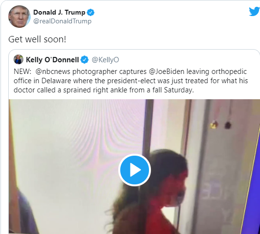 Также О'Коннор добавил, что в течение нескольких недель Джо Байдену придется носить специальный ортопедический ботинок.